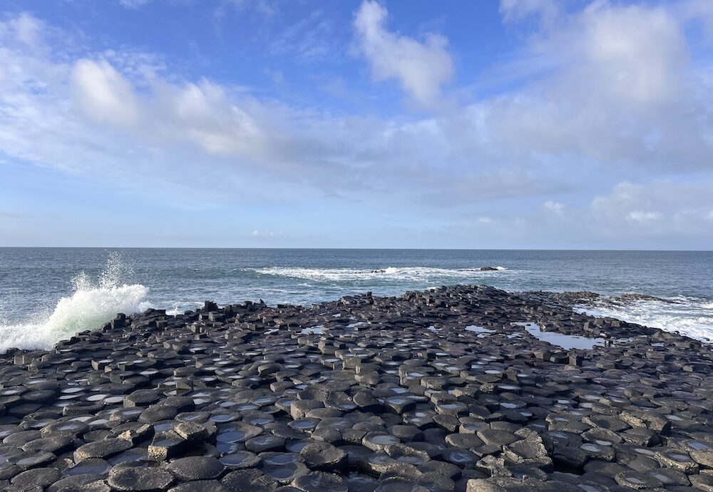 Het is nog donker als we opstaan. Na een snel ontbijt haasten we ons naar het stadscentrum. Daar wacht de tourbus die ons vandaag naar onder andere de Giant’s Causeway zal brengen. Zodra we vertrokken zijn, begint gids Troy te praten. En dat houdt niet meer op tot we de laatste stop gehad hebben. Wetenswaardigheden over de omgeving wisselt hij moeiteloos af met persoonlijke verhalen en droge grappen. Waar je vandaan komt of wat voor werk je doet, bepaalt hoe je wordt aangesproken. Wij zijn de “Dutchies” en -althans volgens Troy – afstammelingen van Wee Willy. Dit was de bijnaam voor koning Willem III vanwege zijn kleine postuur.