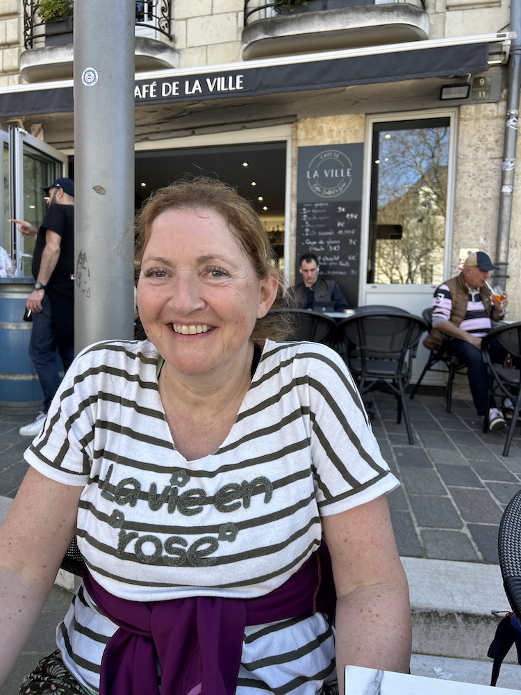 We ploffen al snel neer op een terras voor een alcoholvrij biertje. De temperatuur is opgelopen tot 22 graden en Saumur bruist. Terrassen zitten vol, voorraden raken op. We weten nog net een croque monsieur te bemachtigen – de laatste, zo blijkt.