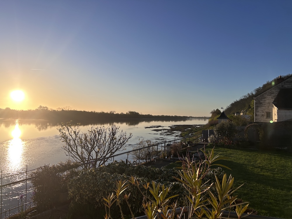 De volgende ochtend begroet de Loire ons in alle schoonheid. B&B Maison Bord de Loire “Les Grillons” ligt aan de Loire en het uitzicht is adembenemend. Na een klassiek Frans ontbijt (denk: knapperig brood, goede koffie, jam die je nergens anders zo proeft) en een hartelijk afscheid van onze gastvrouw en -heer later, gaan we weer op pad.