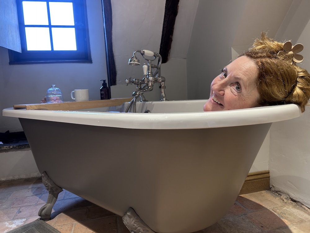 In onze badkamer lonkt een bad op pootjes. Het duurt dan ook niet lang voordat we het laten vollopen en genieten van de warmte en ontspanning. We worden pas om 20.00 uur in de eetzaal verwacht, dus er is alle tijd voor een bad en het schrijven van dit blog.